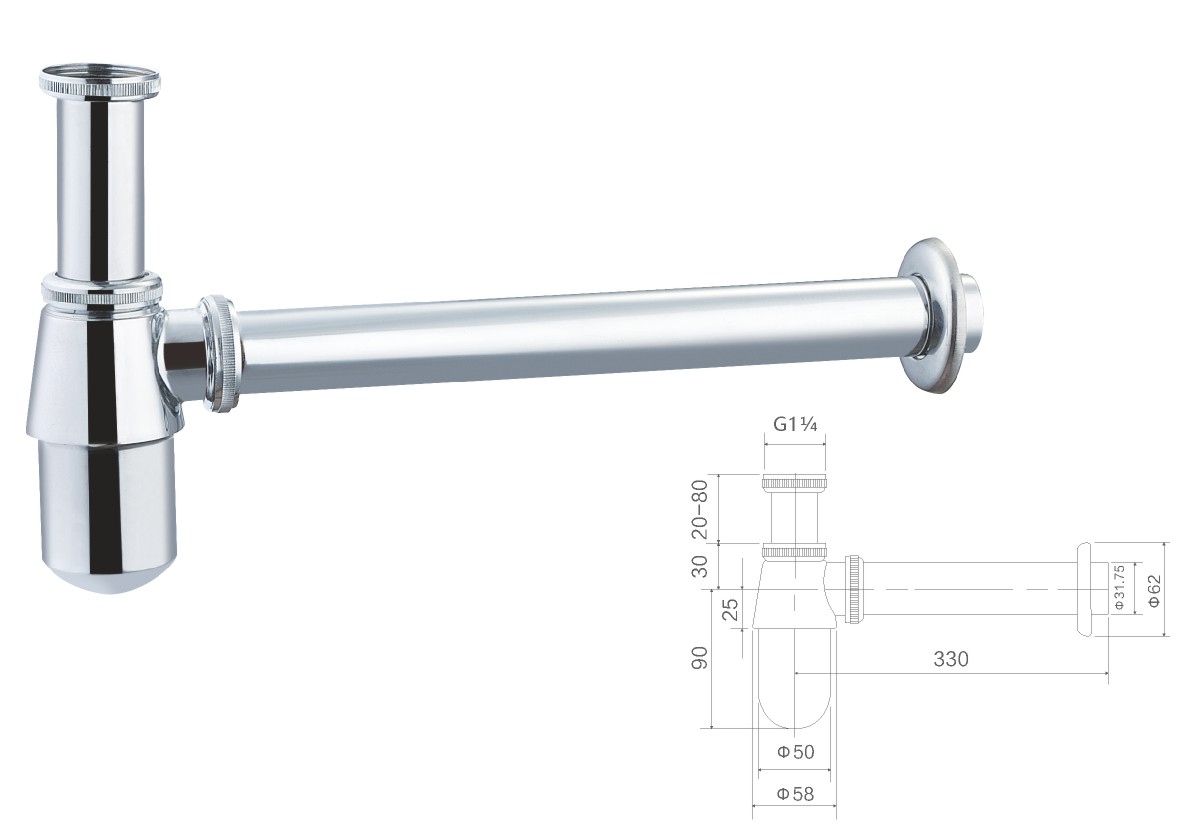 Stainless steel 304 siphon 1 1/4"