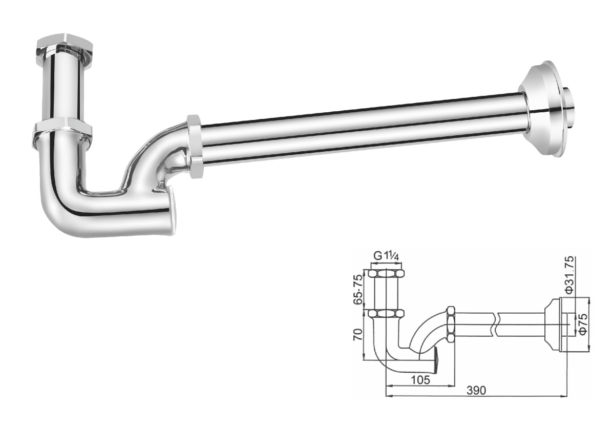 Brass round siphon 1 1/4"