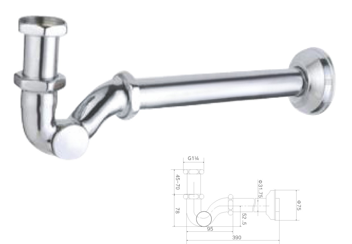Brass round siphon 1 1/4"